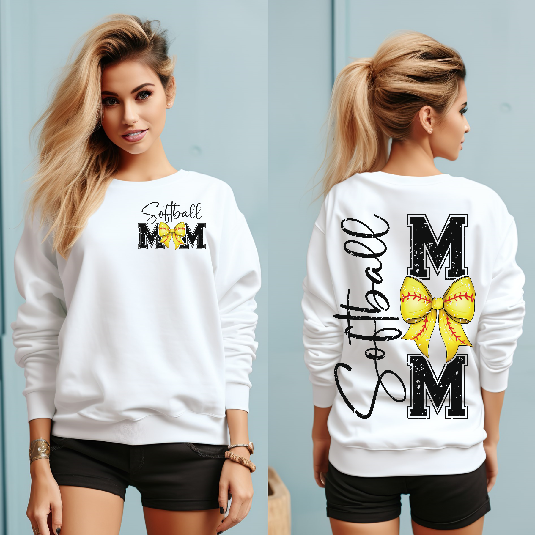Softball Mom with bow Sweatshirt Front and back